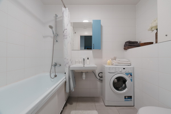 Ванная комната укомплектована свежими полотенцами и средствами гигиены.