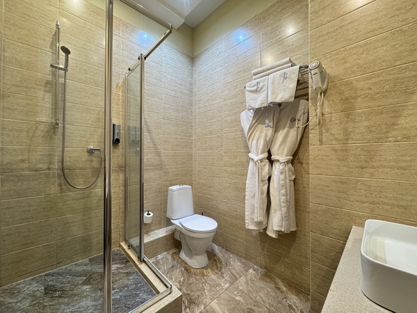 Бесплатно: халаты, тапочки, питьевая вода, чай, набор полотенец, зубные щетки, расчески, бритвы, шапочки для душа.