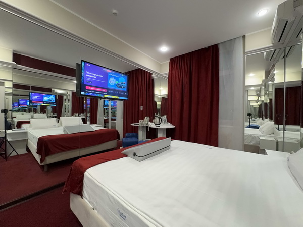 Зеркальные стены, неоновая подсветка, станция Алиса, смарт ТВ, кресло тантра, машина любви, доска любви, коробка для взрослых, каналы для взрослых, чайная станция.