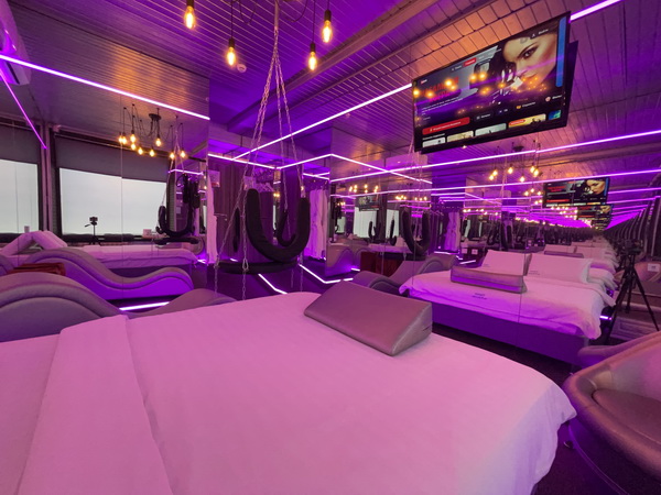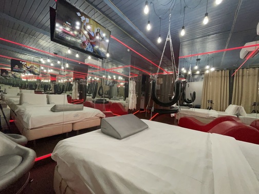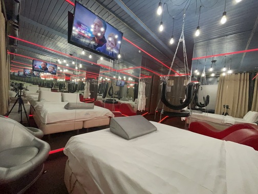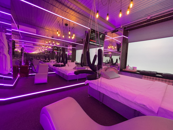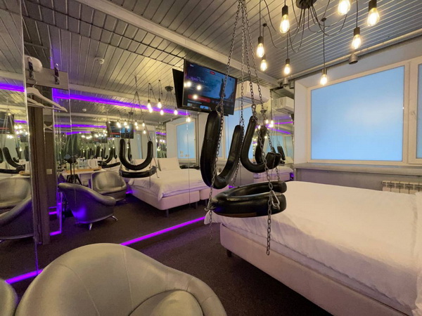 Зеркальные стены, неоновая подсветка, кресло тантра, качели, машина любви, коробка для взрослых, чайная станция.