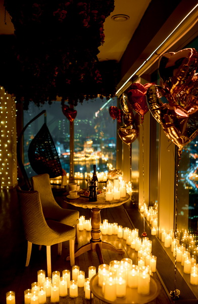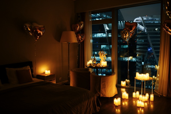 — по комнате расставлены свечи и шары в виде сердечек